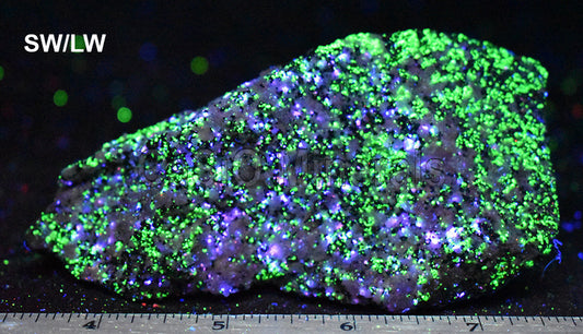 Sphalerite, Cleiophane, Calcite (white FL), Willemite